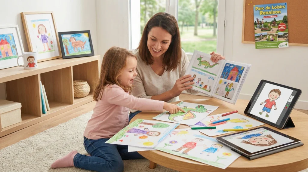 Les dessins d’enfants sont bien plus que de simples productions artistiques : ce sont des témoignages précieux de leur développement, des instantanés de leur imagination débordante, et des souvenirs inestimables de moments partagés en famille. Qu’il s’agisse d’un dragon croqué après une visite au Parc de Loisirs Renaison, d’une maison colorée imaginée lors d’un après-midi pluvieux, ou d’un portrait de famille réalisé pour un anniversaire, chacune de ces créations mérite d’être valorisée et préservée.
